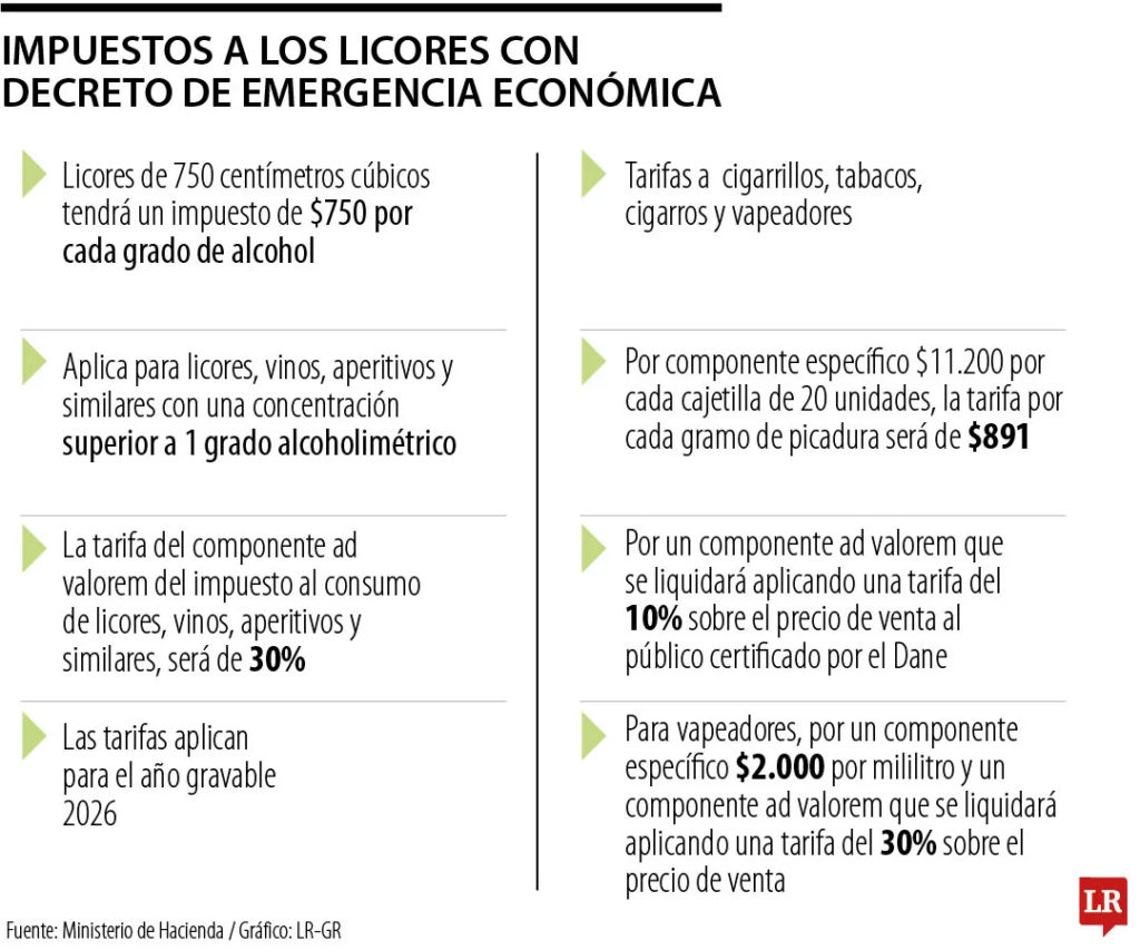 Following the announcement of a state of economic emergency by Finance Minister Germán Ávila, a leaked draft decree reveals the revival of taxes on tobacco and alcohol products that had previously stalled in tax reform discussions. The proposed measures, applicable at the departmental level, aim to update rates, broaden the tax base, and strengthen control over consumption, with a significant expansion in the scope of tobacco taxation.