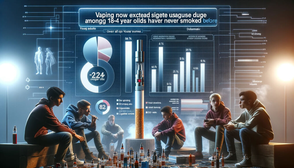 Vaping now exceeds cigarette usage for 18 to 24-year-olds in America, with over half who use e-cigarettes having never smoked tobacco regularly, researchers report. Analysis of an ongoing federal tobacco study shows more young people are becoming addicted to nicotine by vaping instead of via traditional smoking.
